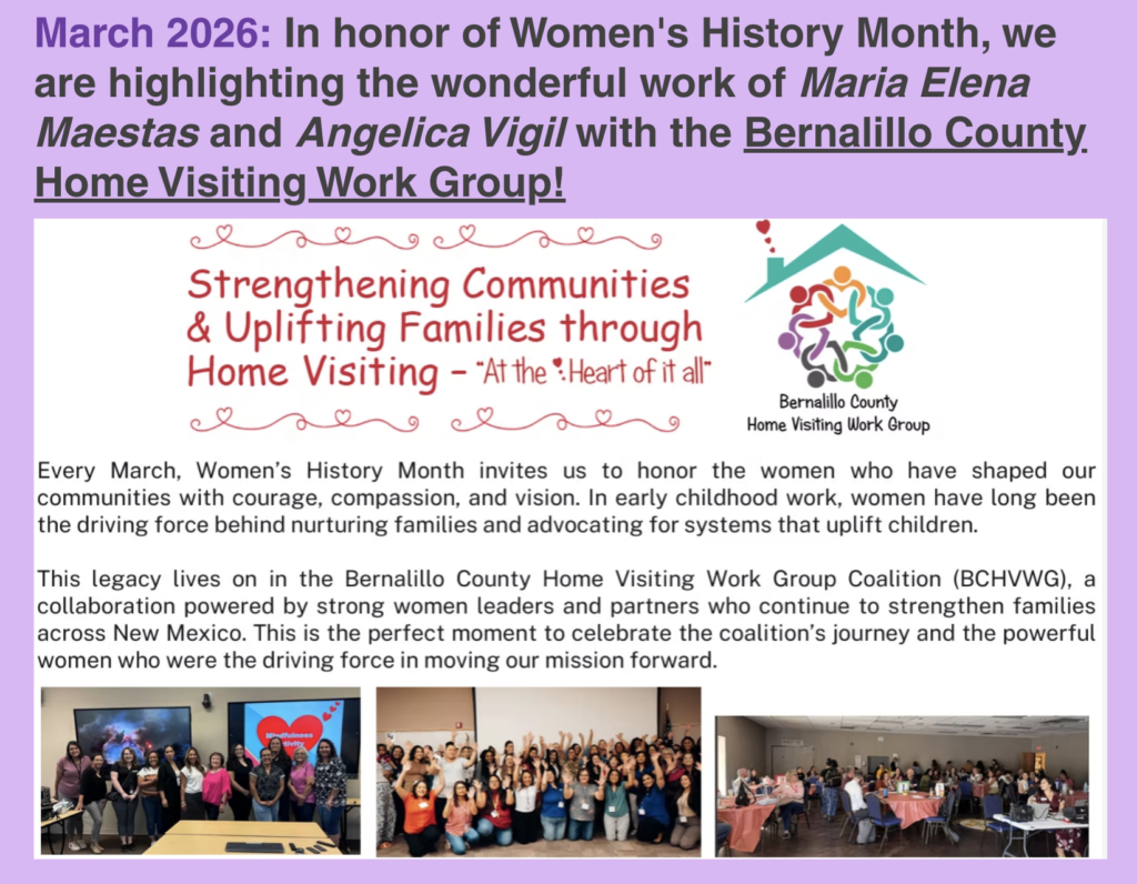 Explore Home Visiting Programs available to families with children prenatal to five in Bernalillo County. These programs provide essential resources and support to promote healthy development, strengthen family bonds, and ensure young children thrive in nurturing environments. These services are designed to foster positive outcomes for both children and their caregivers.